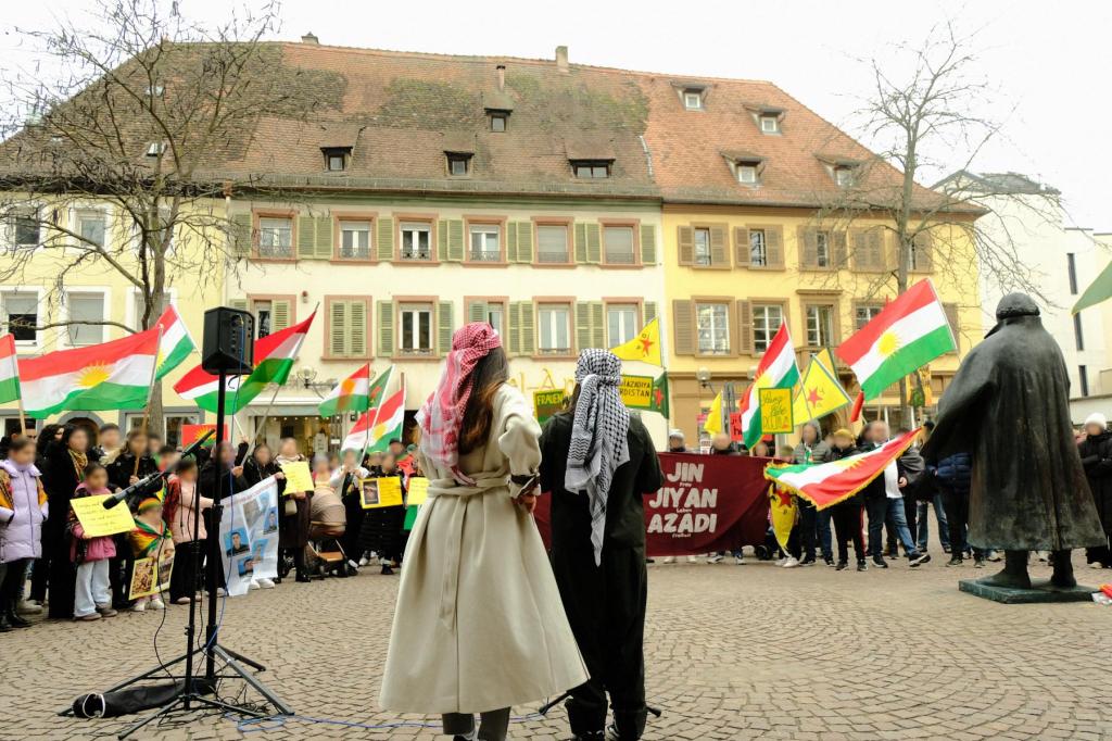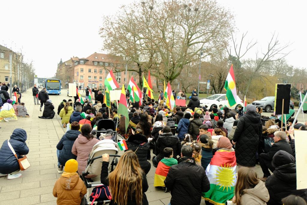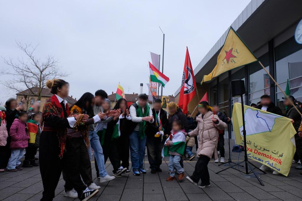 Heute waren ca. 300 Menschen, darunter viele Kurdinnen und Kurden, für die Verteidigung der Revolution in Rojava auf der Straße. Nachdem Anfang Januar Milizen unter Führung der selbsternannten syrischen Übergangsregierung die Selbstverwaltung Rojava (die kurdischen Gebiete in Nord- und Ostsysien) angegriffen haben, steht die Existenz Rojavas auf dem Spiel. Für viele kurdische und deutsche Linke wurde hier auch ein Hoffnungsträger angegriffen.